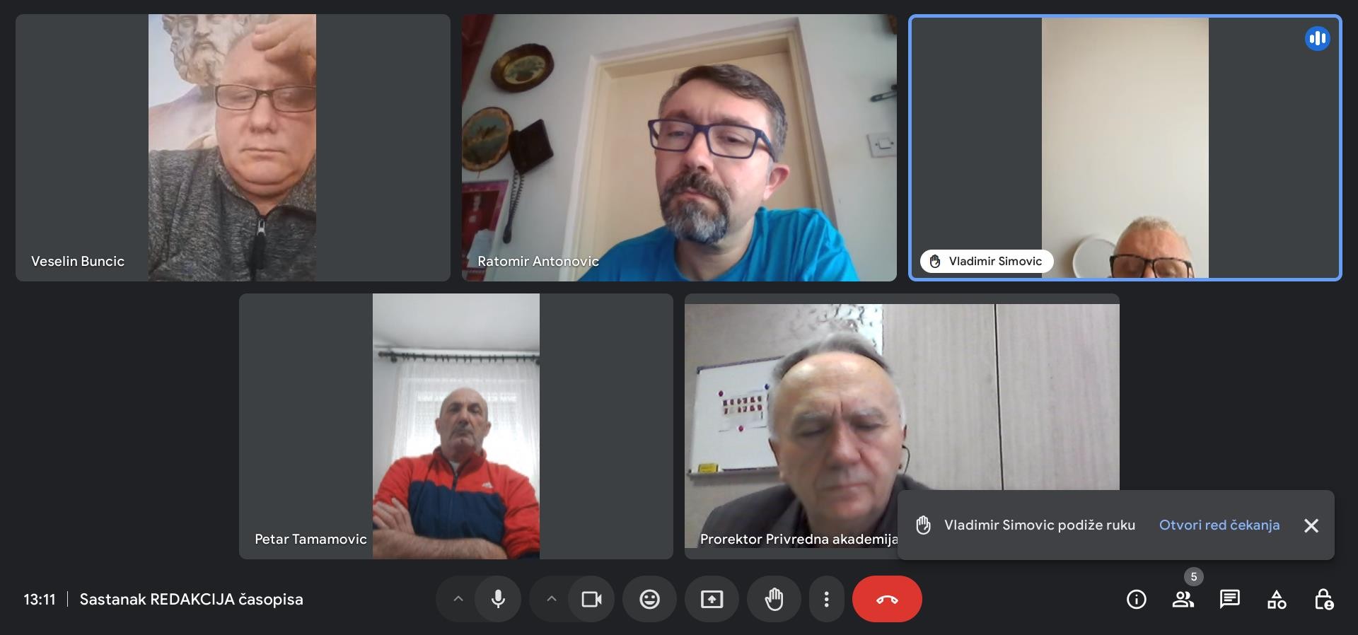 Danas je posredstvom Google Meet alata, održan 3. sastanak Redakcijskog odbora univerzitetskog časopisa „Akademski privrednik“. Na sastanku se pored ostalog raspravljalo  o objavljivanju drugog poziva autorima iz oblasti: prirodne nauke, inženjering i tehnologije, medicinske i zdravstvene nauke, poljoprivredne nauke, društvene i humanističke nauke za dostavu njihovih radova radi objavljivanja u 3. broju koji treba da izađe polovinom juna 2025.godine. Članovi Redakcije su još jednom izrazili čvrst stav da se politika uređivanja časopisa treba zasnivati na poštovanju uređivačkih i izdavačkih standarda za ovakav tip časopisa ukoliko želimo da dostigne očekivani akademski, odnosno međunarodni citatni rejting.